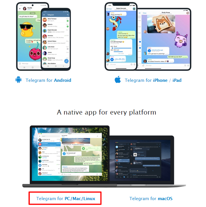 텔레그램은 모바일용 어플뿐만 아니라 윈도, MAC, 리눅스에서 사용할 수 있는 텔레그램 PC 버전도 존재합니다.