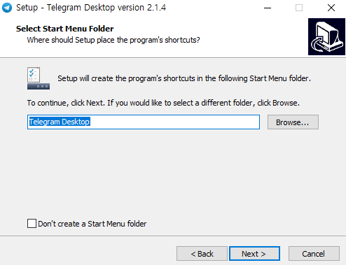 텔레그램 바로가기 아이콘을 바탕화면에 표시할 것인지 아닌지 선택할 수 있습니다.