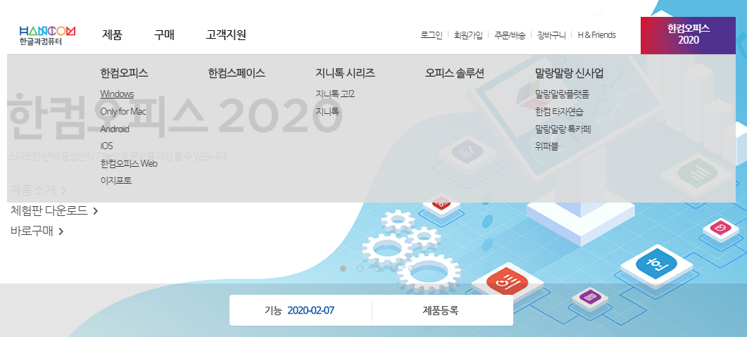 한글 2020 무료 설치 다운로드하기 위해 한글과 컴퓨터 공식 홈페이지에 접속합니다.